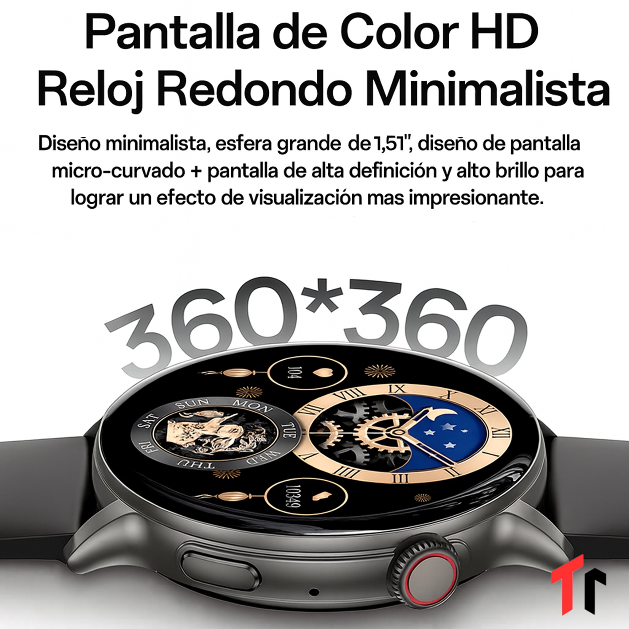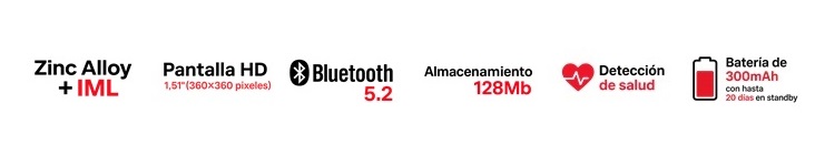 - Pantalla HD 1.51” (360×360 píxeles).