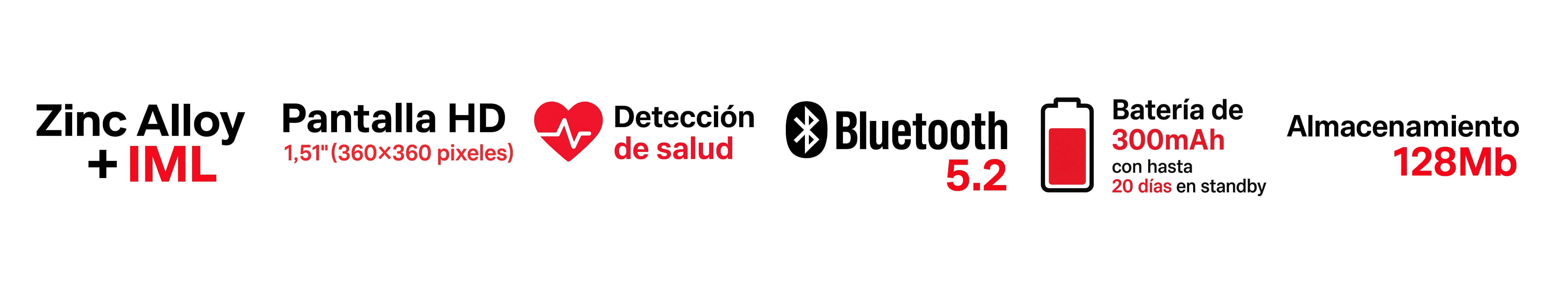 - Pantalla HD 1.51” (360×360 píxeles).